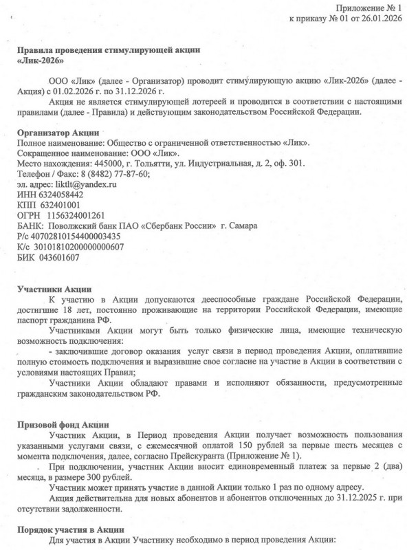 доступа к сети кабельного телевидения (СКТВ) Оператора и ретрансляция пакета телевизионных каналов "ЛИК" Абоненту