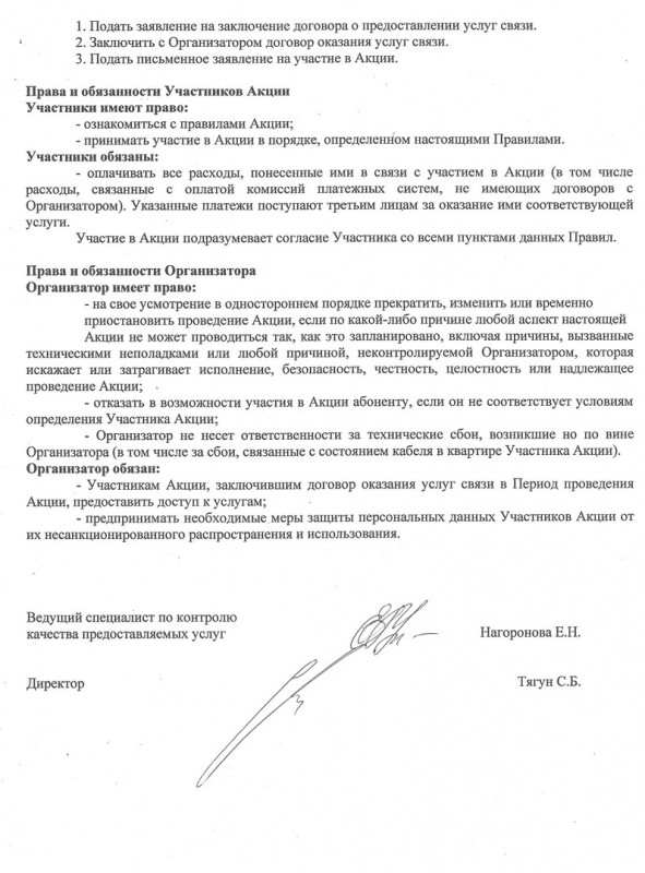 3.1.1 Оказывать услуги в соответствии с Правилами оказания услуг. Информацию о Правилах можно получить через информационно-справочную систему Оператора (информационный канал, абонентские отделы, сайт Оператора http://www.liktv.ru/, консультант-диспетчер).